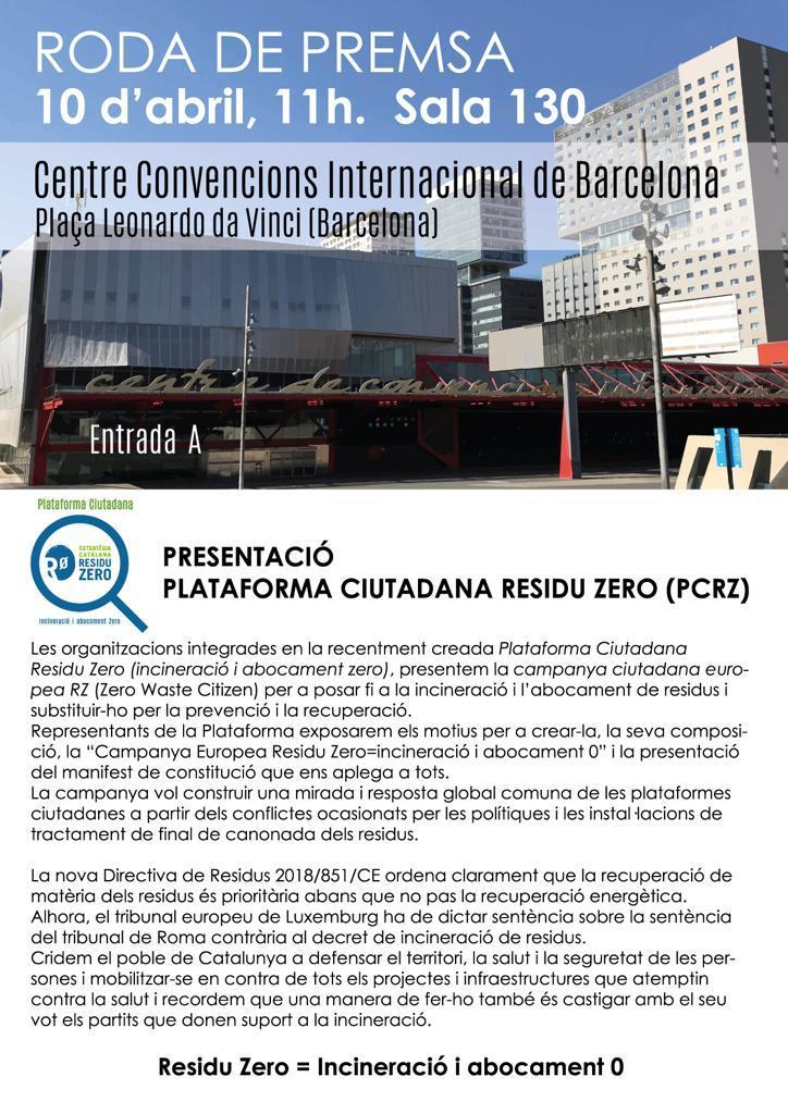 S’ha presentat públicament la Plataforma Ciutadana Residu Zero. La Plataforma agrupa diverses organitzacions per donar una mirada i resposta global comuna de les organitzacions a partir dels conflictes ocasionats per les polítiques i instal·lacions de tractament de canonada dels residus.